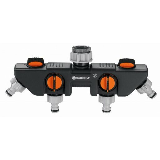Z GARDENA 4-kanalnim razdelilnikom lahko na eno pipo hkrati priključite več naprav. Pretok vode lahko na vsakem odcepu posebej upravljate in ustavite. Na 4-kanalni razdelilnik lahko priključite dva GARDENA vodna računalnika ali vodne časovnike. 4-kanalni razdelilnik lahko naknadno namestite na sistem GARDENA Profi System s pomočjo priključka za pipo Profi System (št. izdelka 2801-20). Za uporabo s pipami z navojem 33,3 mm (G 1") in 26,5 mm (G 3/4").