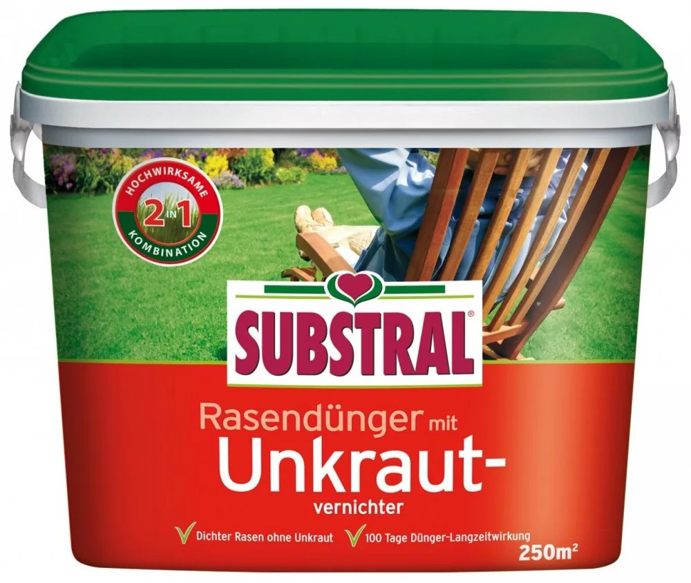Hitro in varno zatiranje plevela - v kombinaciji s hkratnim dolgotrajnim dopolnjevanjem hranil. Uničenje korenin vseh tipičnih plevelov na trati. Hkrati trato hrani 2-3 mesece. Enakomerno velika zrnca brez prahu za enostavno rokovanje in uravnoteženo delovanje.