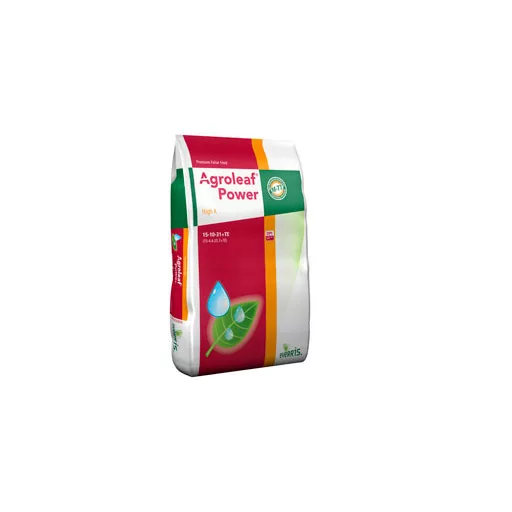 Agroleaf Power High K je listno gnojilo, ki preprečuje in obnavlja pomanjkanje kalija in drugih hranil. Najbolj učinkovito je v slabih rastnih razmerah, ko je vnos hranil skozi korenine otežen. Spodbuja zgodnje zorenje, izboljša barvo ter poveča vsebnost sladkorja in čvrstost sadnega mesa.