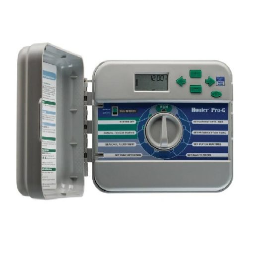 Hunter Pro-C je modularna (razširljiva) družina samodejnih krmilnikov za zalivanje domačih vrtov in javnih površin.Na voljo so standardno 3 območja, ki jih je mogoče razširiti do 15 območij s 3 ali 9 razširitvenimi moduli.Na voljo v notranji in zunanji različici Trije neodvisni programi 4 možnosti zagona na dan za vsak program Pravi 365-dnevni koledar, Namakanje na lihe/parne dni, na določene dni v tednu ali v intervalih Možnost sezonske nastavitve (%) Izklop s senzorjem dežja na sprednji plošči Zamenljiva litijeva baterija Možnost hkratnega delovanja 3 elektromagnetnih ventilov (z glavnim) Nastavljiv premor med območji (za polnjenje vodnjakov ali počasno zapiranje ventilov, od 0 s do 4 ure) Hunter Quick Check - elektronsko zaznavanje izklopa na območju za lažje odpravljanje težav Lahko se uporablja tudi s centralnim nadzornim sistemom Hunter IMMS ter daljinskimi upravljalniki Hunter SRR in ICR