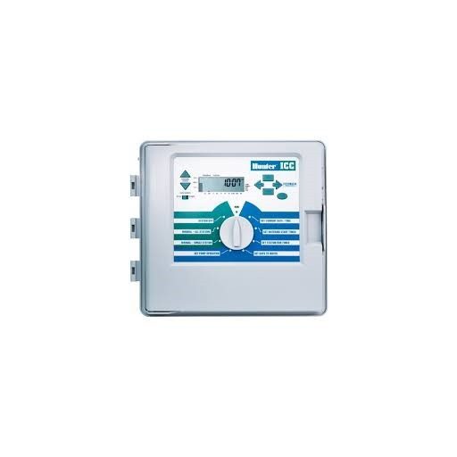 Hunter ICC je modularni (razširljiv), vsestranski avtomatski krmilnik za profesionalno, obsežno industrijsko uporabo Standardni 8-kanalni, razširljiv do 32 con v plastičnem ohišju ali razširljiv do 48 con v kovinskem ohišju, oba je mogoče namestiti na prostem Razširitveni moduli za 4 in 8-kanalni program Štirje neodvisni programi 8 možnosti zagona na dan na program Pravi 365-dnevni koledar, namakanje na lihe/parne dneve, dneve v tednu ali intervale možnost sezonske nastavitve (%) stikalo za izklop senzorja dežja na sprednji plošči neprekinjen spomin (brez baterije) hkratno delovanje 5 elektromagnetnih ventilov (vključno z glavnim), max. Nastavljiv premor med območji (zaradi polnjenja vodnjaka ali počasnega zapiranja ventilov, od 0 s do 10 ur) Hunter Quick Check - elektronsko zaznavanje izklopa na območju za lažje odpravljanje težav Samodiagnostično vezje, ki preskoči izklopni krog in nadaljuje namakanje Lahko se uporablja tudi s centralnim nadzornim sistemom Hunter IMMS ter daljinskimi upravljalniki Hunter SRR in ICR