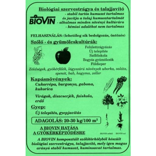 - 100 kg suhe snovi BIOVIN ustreza 3-5 t zrelega hlevskega gnoja. Prevoz in uporaba sta lažja in enostavnejša.