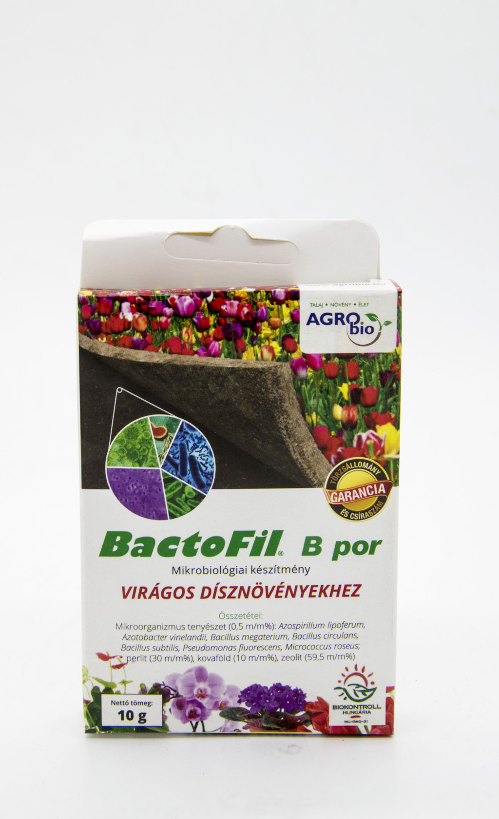 Linija BactoFil je najbolj patentirana in široko uporabljena kmetijska mikrobiološka formulacija v večini držav sveta, z več kot milijon hektarjev izkušenj na terenu. Čeprav se ta edinstvena paleta izdelkov za aktiviranje tal z velikim uspehom uporablja pri vrtnarskih pridelkih, se zaradi posebnih zahtev ravnanja s tekočo formulacijo uporablja predvsem pri poljščinah. Za letošnjo deseto obletnico ustanovitve podjetja AGRO.bio Hungary Kft. je dozorel rezultat dolgo pričakovanega razvoja. Kot rezultat večletnega mikrobiološkega raziskovalnega in razvojnega dela je bila izdelana praškasta različica izdelkov BactoFil, ki aktivira obdelana tla z enako učinkovitostjo kot tekoča formulacija. Škatla vsebuje 5 gramov praška BactoFil v 2-2 vodotopnih vrečkah. Zaradi tega je uporaba zelo enostavna in varna, saj majhno vrečko, ki je topna v vodi, preprosto vržemo na primer v zalivalnik, kjer se zelo hitro raztopi in jo lahko uporabimo za obdelavo tal rastlin, bodisi za trenutno jesensko sajenje dreves bodisi za postavitev ali obnovo trate. Podrobna navodila za uporabo so navedena na hrbtni strani vsake pločevinke.
