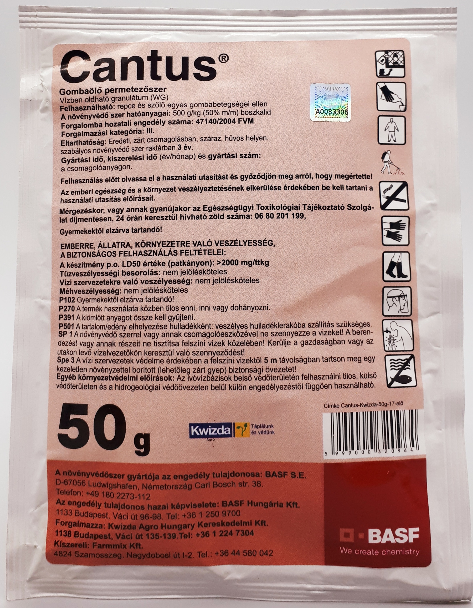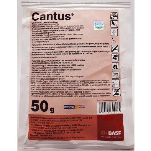 Cantus deluje sistemično in translaminarno. Učinkovit je proti glivam, ki povzročajo gnitje, pepelovki, rji in številnim točkovnim boleznim. Zavira mitohondrijski prenos elektronov gliv (kompleks II, TCA cikel). Idealne temperature in idealnega obdobja ni mogoče določiti. Ni pogojev za potenciranje. Preventivna uporaba na začetku procesa okužbe. 300-500 l/ha na polju, 600-1000 l/ha v vinogradih, z uporabo drobnih kapljic. V vinogradih se lahko fungicidi kombinirajo s Cabrio Top, Vivando, Clarinet, Polyram DF, Delan 700 WG, bakrovimi pripravki, Acrobat MZ ali Forum R.