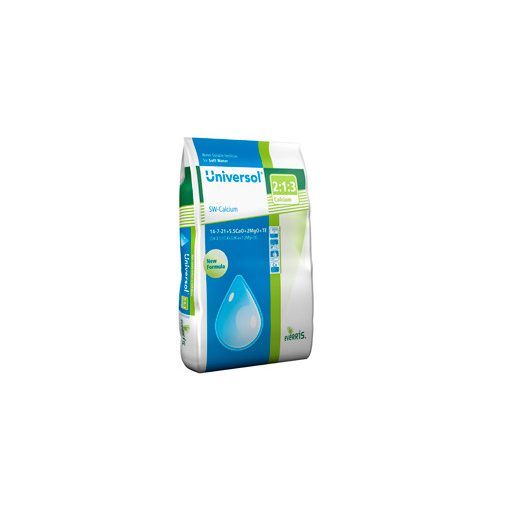 Universol Soft Water Calcium je gnojilo, razvito posebej za mehko namakalno vodo, ki zagotavlja stalno oskrbo s kalcijem in magnezijem. Ima razmerje N:K 2:3 in je bogato s kalijem, zato je idealno za cvetoče okrasne rastline. Universol SW-Calcium se lahko v sistemu z enim rezervoarjem meša s kalcijevim nitratom, da se uravnoteži razmerje N:K.