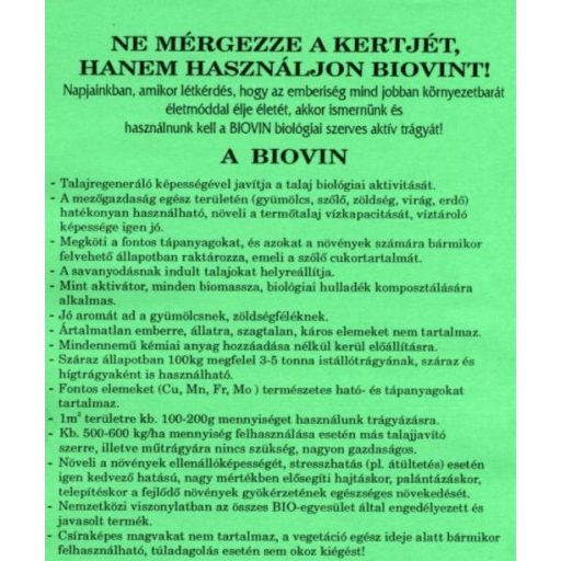 Biovin se lahko uporablja kadar koli v rastni sezoni in se lahko uporablja za vse pridelke.