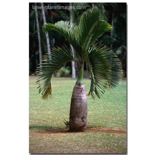 Debelina debla je vidna tudi pri mladih primerkih, na deblu je okrogla izboklina, ki se z leti postopoma povečuje in podaljšuje. Listje je zeleno, s 4 do 8 krilatimi, navzdol ukrivljenimi listi na vrhu debla, ki lahko dosežejo dolžino do 3,1 metra.