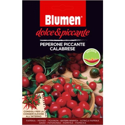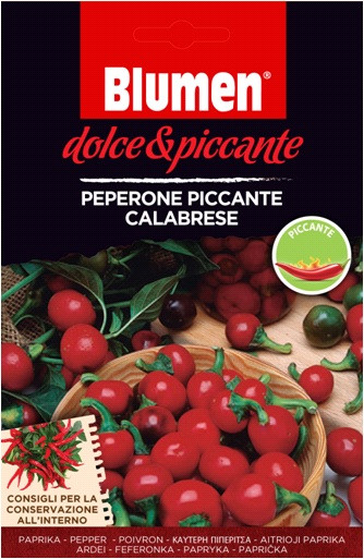 Kalabrijski močni feferoni - pikantni Srednje močan tip, plodovi so rdeči, okrogli in grbasti, veliki 3,5-4 cm. Primerni so tudi za konzerviranje v olju. Hvaležen je za sonce. Priporočena temperatura za setev: 20/30 °C. Sejemo lahko na prosto ali v plasti...