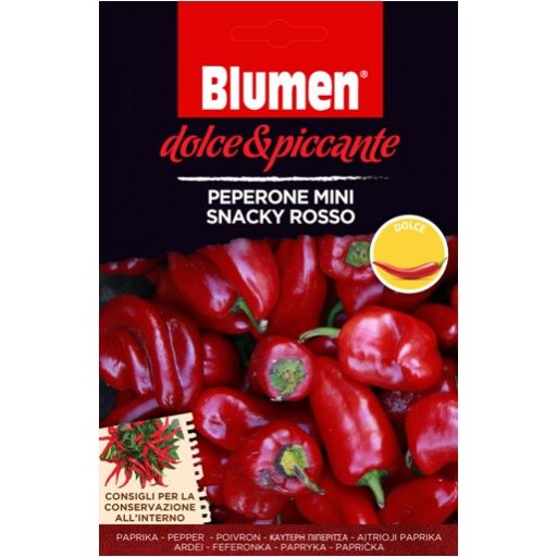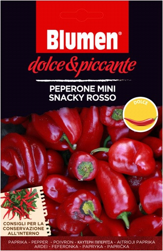 Mini prigrizek feferoni - sladki Izjemno sladka vrsta s svežim in sadnim okusom. Idealen za uživanje surovih. Rastlina je izjemno kompaktna in daje zelo velik pridelek. Potrebuje veliko sonca. Priporočena temperatura setve: 20/30 °C. Sejemo lahko na prost...