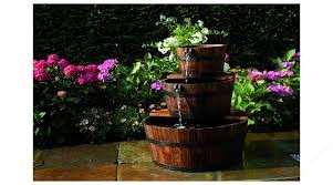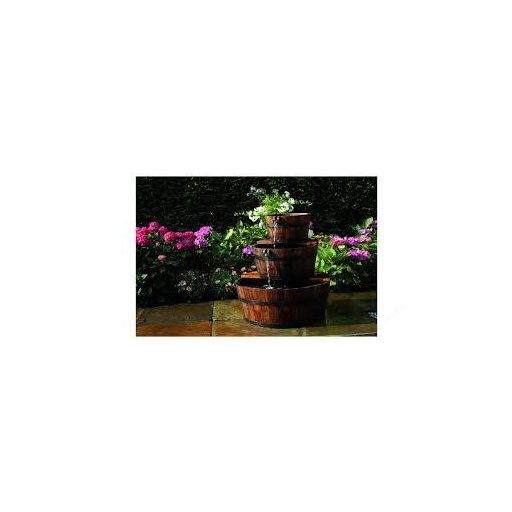 Rustikalni vodnjak, sestavljen iz treh lesenih sodov. V vsakem je plastični notranji bazen, s črpalko in opremo. - Material: les - Premer: 32/46/59 cm - Višina: 72 cm - Brez razsvetljave