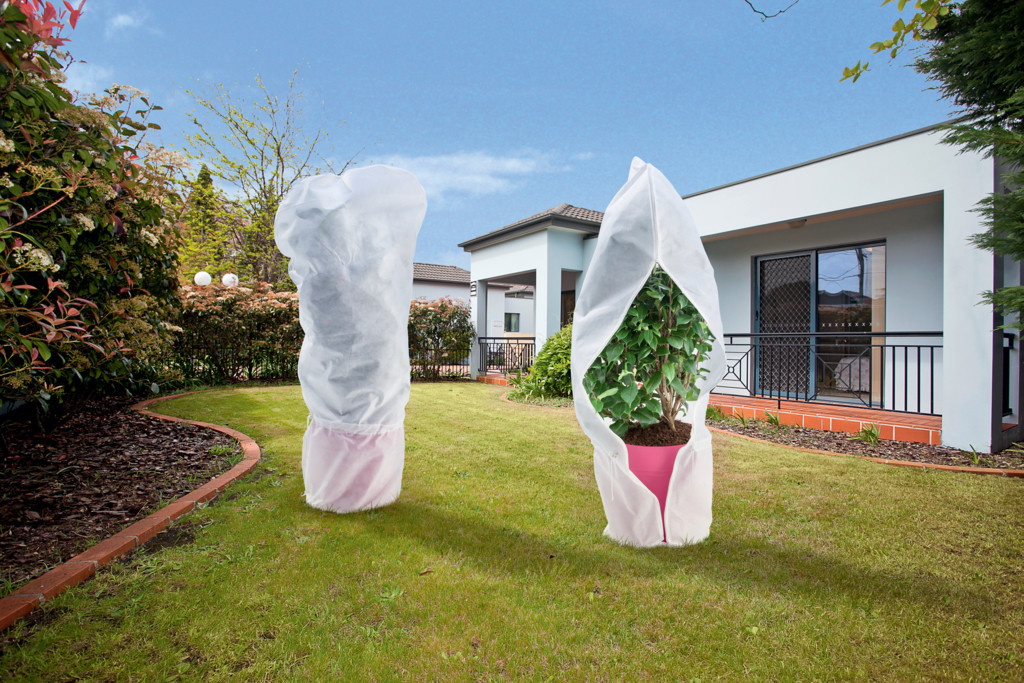 Odlična zaščita za krhke, občutljive rastline in grmovnice pred mrazom, vetrom in točo. Prednost je, da lahko rastline enostavno in hitro zalivate z zadrgo, ki se odpira vodoravno v dveh smereh spodaj in navzgor. Z zategovalnikom jo lahko pritrdite na mesto na dnu rastline.