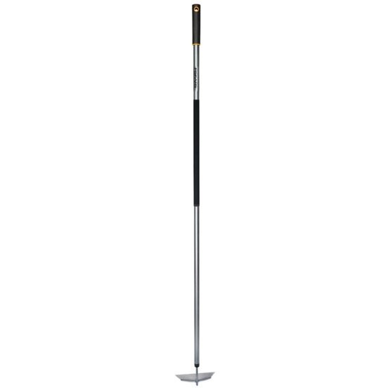 Lahka vrtna orodja Fiskars so orodja, ki zmanjšujejo bolečine v hrbtu in olajšajo vrtnarjenje. Ročaji so lahki, aluminijasti, prevlečeni s plastiko, z ergonomskim ročajem v obliki solze. Fiskars je prenovil družino. Na koncu orodja je dodan kavelj iz poli...