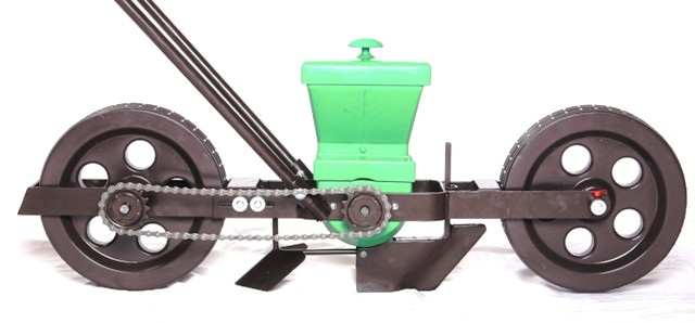 lažje je natančno sejati. Sprednje kolo opravlja tudi funkcijo "predhodnega glajenja", izravnave tal, medtem ko zadnje kolo zgošča sejalno površino.