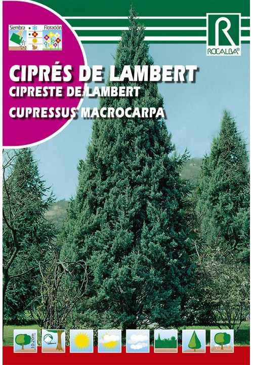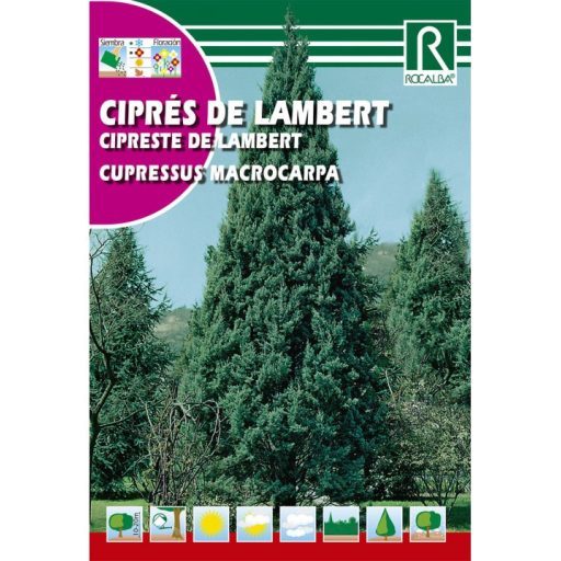 Lambertova cipresa (Cupressus macrocarpa) Vsebina pakiranja 1 g Razširjena, stožčasta zimzelena vrsta, visoka do 25 m. Skorja je rdeče rjava, drobno rebrasta. Listi so majhni, luskasti, mesnati. Tesno so pritrjeni na poganjke. Veje so nepravilne, dišeče...