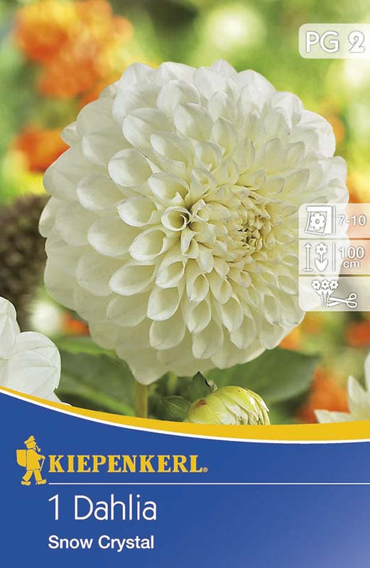 Okrasna dalija Snow Crystal je široka od 6 do 10 cm in ima svetleče bele cvetove. Približno 100 cm visoka. Stebla lahko odrežete na vazi. Dalije pred vzgojo vzgojimo marca v lončkih, nato jih potisnemo naprej do konca maja, ali pa jih sredi maja posadimo na njive za neposredno sajenje.