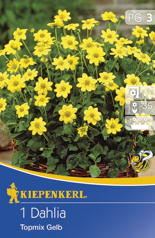 Informacije o izdelku "Topmix dalija rumena" Znane tudi kot baby dalije, to so najmanjše dalije in najmanjši cvetovi, vendar v velikih količinah. Za posteljne okvirje, zabojčke in sklede. Dobavitelj nektarja za čebele, ose in metulje. cveti poleti, cvet...