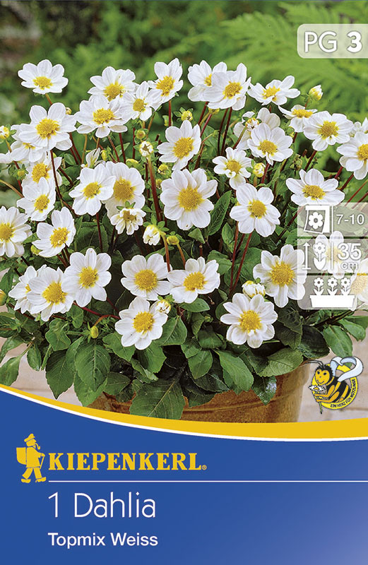 Informacije o izdelku "Topmix Dahlia White" To so najmanjše dalije in najmanjši cvetovi, vendar v velikih količinah, znane tudi kot baby dalije. Za posteljne okvirje, zabojčke in sklede. Dobavitelj nektarja za čebele, ose in metulje. cveti poleti, cveti ...