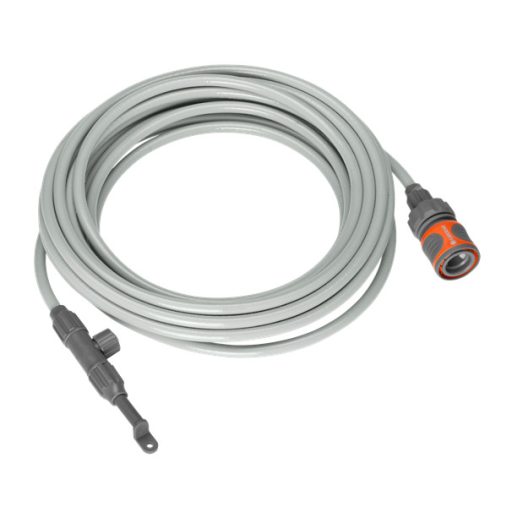 Komplet vlažilnika zraka GARDENA vam pomaga pri ohlajanju v vročih poletnih dneh. Sistem šob z mikro meglicami preprosto priključite na senčnik, markizo ali pergolo, konec pa na vodovodno pipo. Drobna meglica iz šob prijetno ohladi zrak. Komplet vsebuje 10 m cevi, 7 šob za mikrorazprševanje, 1 šobo z zaporko za vodo, 13 pritrdilnih sponk in cevni element OGS, s katerim lahko sistem takoj vzpostavite, z dodatnimi kompleti pa ga lahko razširite.