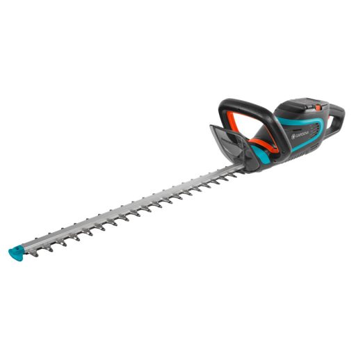 Zmogljive GARDENA akumulatorske škarje za živo mejo PowerCut Li-40/60 so kot nalašč za priročno brezžično obrezovanje velikih živih mej. Ročaj ErgoLine zagotavlja udoben oprijem in enostavno uporabo v vsakem položaju za rezanje. Optimizirana geometrija rezil zagotavlja učinkovito, hitro in čisto rezanje. Intuitivna nadzorna plošča na ročaju zagotavlja najbolj udobno delo. Komplet vključuje baterijo in polnilnik. Škarje za živo mejo poganja GARDENA sistemski akumulator 40 V* in 2,6 Ah, ki ga je enostavno vzdrževati. Akumulator lahko kadar koli hitro napolnite brez spominskega učinka. * Akumulator ima največjo neobremenjeno napetost 40 V in nazivno napetost 36 V.