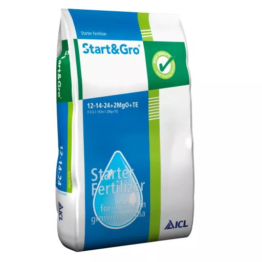 Start & Gro je posebno začetno gnojilo ICL za lončnice, gredice in vse vrtnine v posodah. Gnojilo Start & Gro je zasnovano za hiter razvoj rastlin v prvih tednih gojenja. Gnojilo je 100 % topno v vodi, vsebuje veliko kelatov in je enostavno za mešanje.