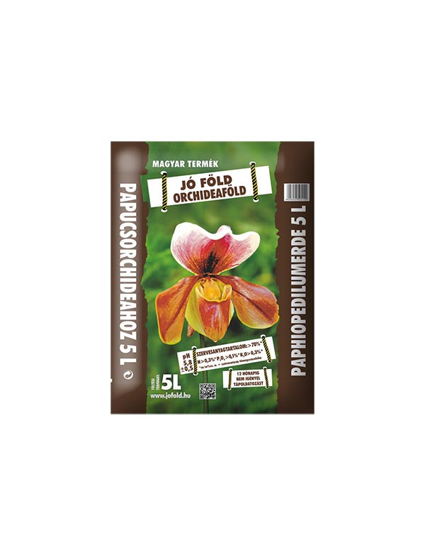 Vrhunska zemlja za orhideje, izdelana na Madžarskem, s hranili za 12 mesecev. pH 5,8 Surovine: Sestavine: šota Sphagnum, posebno borovo lubje, kokosova vlakna, perlit in gnojila EC.