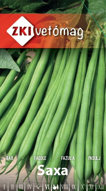 Saxa Bokorbab. Grmovni fižol, primeren za gojenje na prostem, z bujnimi, zelenimi stroki. Ima zelo močan sistem stebel z visoko razvitimi, koncentriranimi stroki. Plodovi so nežni, brez vlaken, velikosti 120*8 mm. Zelo ploden, srednje velik. Odporen na pegavost, bakterijsko mastno pegavost in virus fižolovega mozaika. Primeren tudi za konzerviranje in hlajenje.