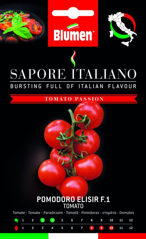 HIBRID 'ELIXIR' (Elisir Solanum lycopersicum L. F1) - nenehno raste. Željna sonca. Priporočena temperatura setve: 20/30 °C. Lahko se seje na prostem ali v plastično posodo. Čas setve: marec - april, zorenje: avgust - oktober. Obdobje sajenja in spravila se lahko razlikuje od regije do regije v primerjavi s kandidati. Dvakrat zavita za visoko kakovost in zagotovljen vznik v skladu s sistemom 3 P.A.C.