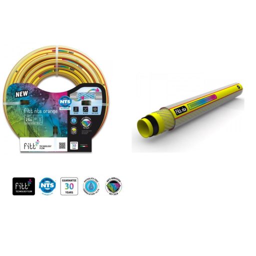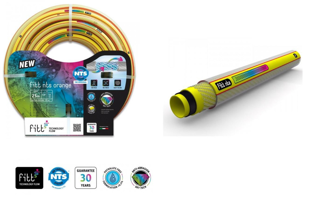 Cev, ki se ne zapleta 6 plasti. Mehka in praktična vrtna cev! Izdelana s 50-letnimi izkušnjami!Šestplastna cev je izdelana iz oranžne notranje plasti, črne plasti proti algam, še ene oranžne vmesne plasti, ojačane mreže NTS, ki jo prekriva prozorna plast, in zunanje plasti folije SKY TECH, odporne proti UV žarkom, ki zagotavlja odpornost proti vremenskim vplivom in obrabi. Tehnologija SKY TECH poveča odpornost cevi proti praskam in obrabi ter ustvari gladko površino, ki omogoča drsenje po vseh površinah, tudi na vogalih