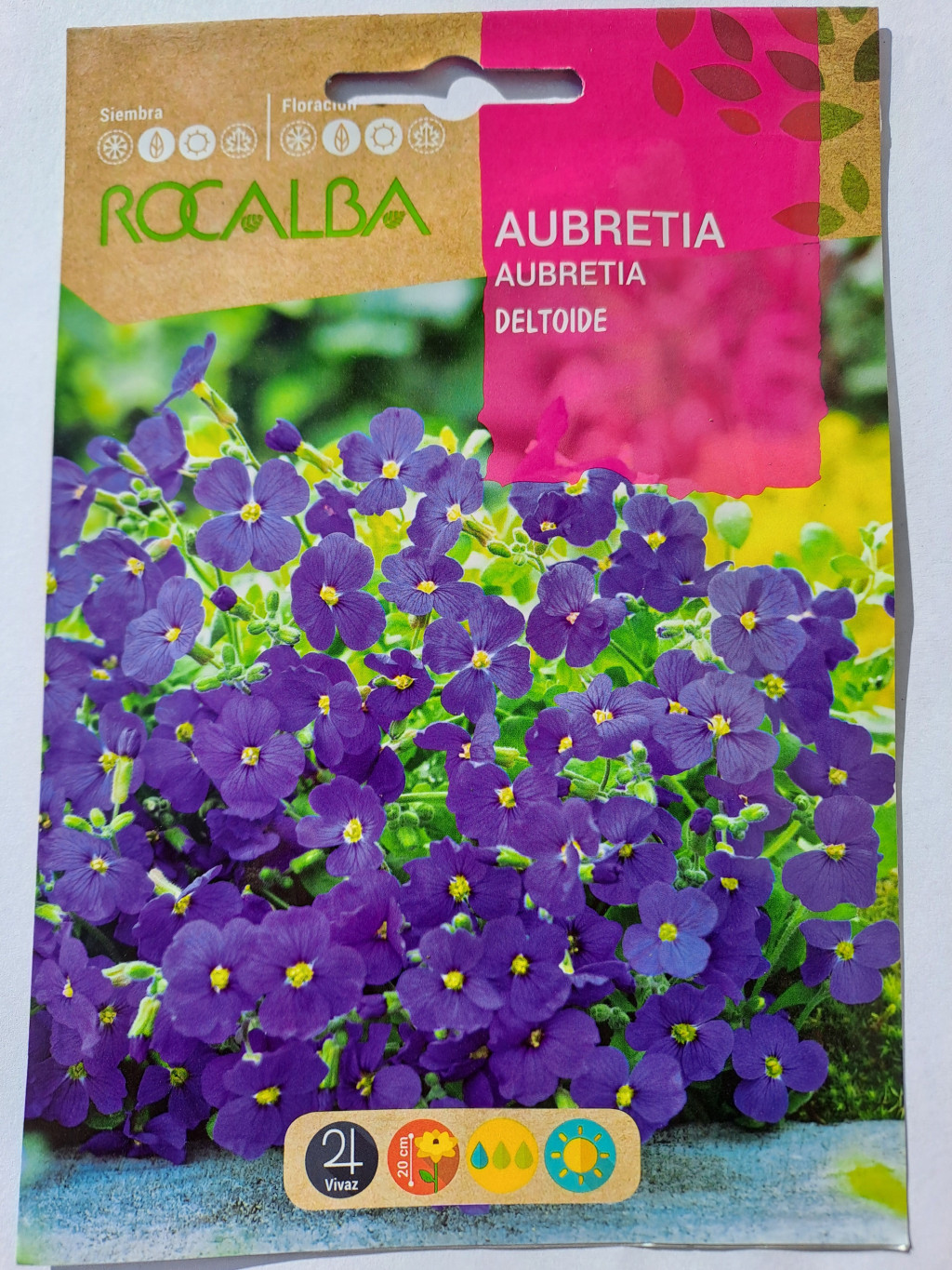 (Aubrieta x cultorum) je nizko rastoča trajnica zimzelena, ki izvira iz južne Evrope in osrednje Azije. Je precej nizka, blazinasta, grmasta rastlina, ki je živo obarvana in ima grmičast habitus.v drugi polovici pomladi cveti v vijolični, rožnati in modrovijolični barvi.