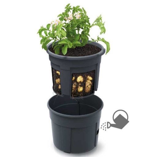 Vgrajen rezervoar za vodo zagotavlja stalno primerno vlažnost. Zaradi odstranljivega notranjega lonca lahko enostavno spremljate rast gomoljev. Ko krompir doseže primerno velikost, lahko odvzamete ustrezno količino, preostali krompir pa bo še naprej rasel v loncu.
