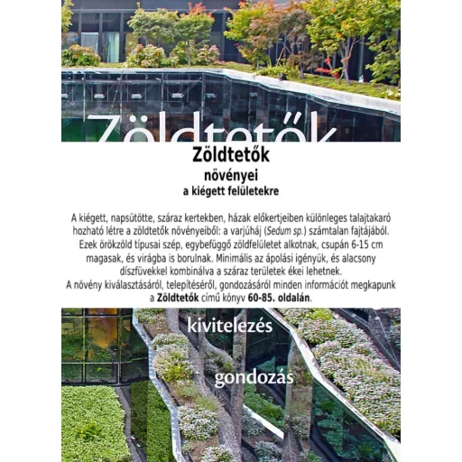 Poleg fotografij pravih zelenih streh in zelenih strešnih vrtov so v knjigi predstavljene celovite tehnične rešitve, od izolacije streh do barvitega zelenja, od samozadostnih zelenih streh do pohodnih strešnih vrtov.
