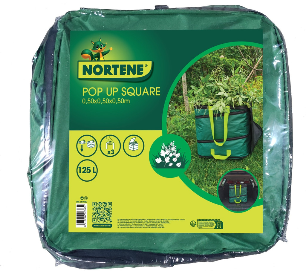 Kvadratna vreča za listje POP UP SQUARE: hitro in enostavno zbiranje zelenega vrtnega odpada! Z uporabo te vrečke prihranite čas in zmanjšajte nepotrebno hojo.