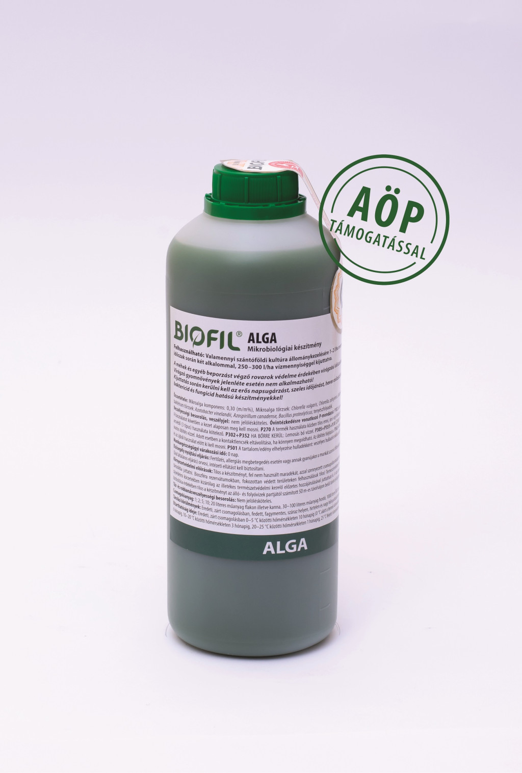 BIOFIL® Alga je mikrobiološka formulacija, ki vsebuje dve mikroalgi in tri seve talnih bakterij, edinstveno foliarno gnojilo na domačem trgu. Študije, opravljene z BIOFIL® Alga, so pokazale, da se pospeši razvoj korenin tretirane rastline, poveča se zelena površina in vsebnost klorofila v njej ter poveča pridelek. Izrazito se izboljša tudi splošna odpornost na stres in s tem odpornost na sušo.