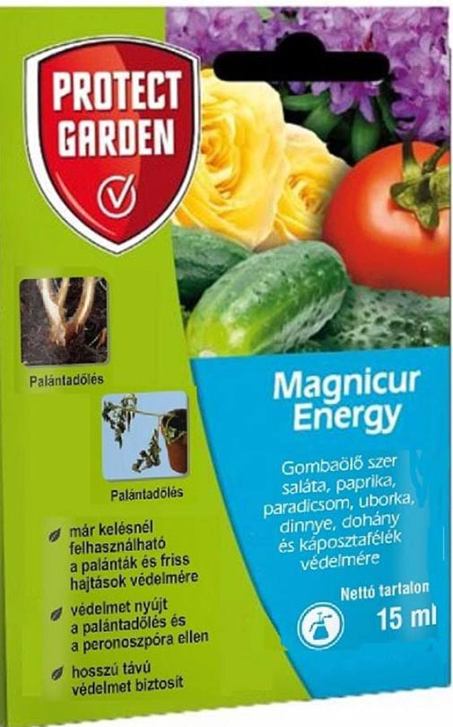 Magnicur Energy je sestavljen iz dveh odličnih absorpcijskih antimikotikov. Ta edinstvena formulacija je zelo učinkovita proti številnim vrstam glivičnih alg. Odlična je za uporabo proti zgodnjim boleznim kalivosti z namakanjem ali pozneje nastajajočim boleznim peronospor s sistemi kapljičnega namakanja ali konvencionalno uporabo.