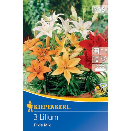 Lastnosti cvetlične čebulice Lily Pixie Mix Kiepenkerl: Okrogla velikost čebulice: 14/16 cm Priporočeni čas sajenja: 1: Pomlad. Lahko se posadi tudi v balkonski zaboj. Višina rastline: 45 cm Čas cvetenja: 45 cm: 7-8 mesecev