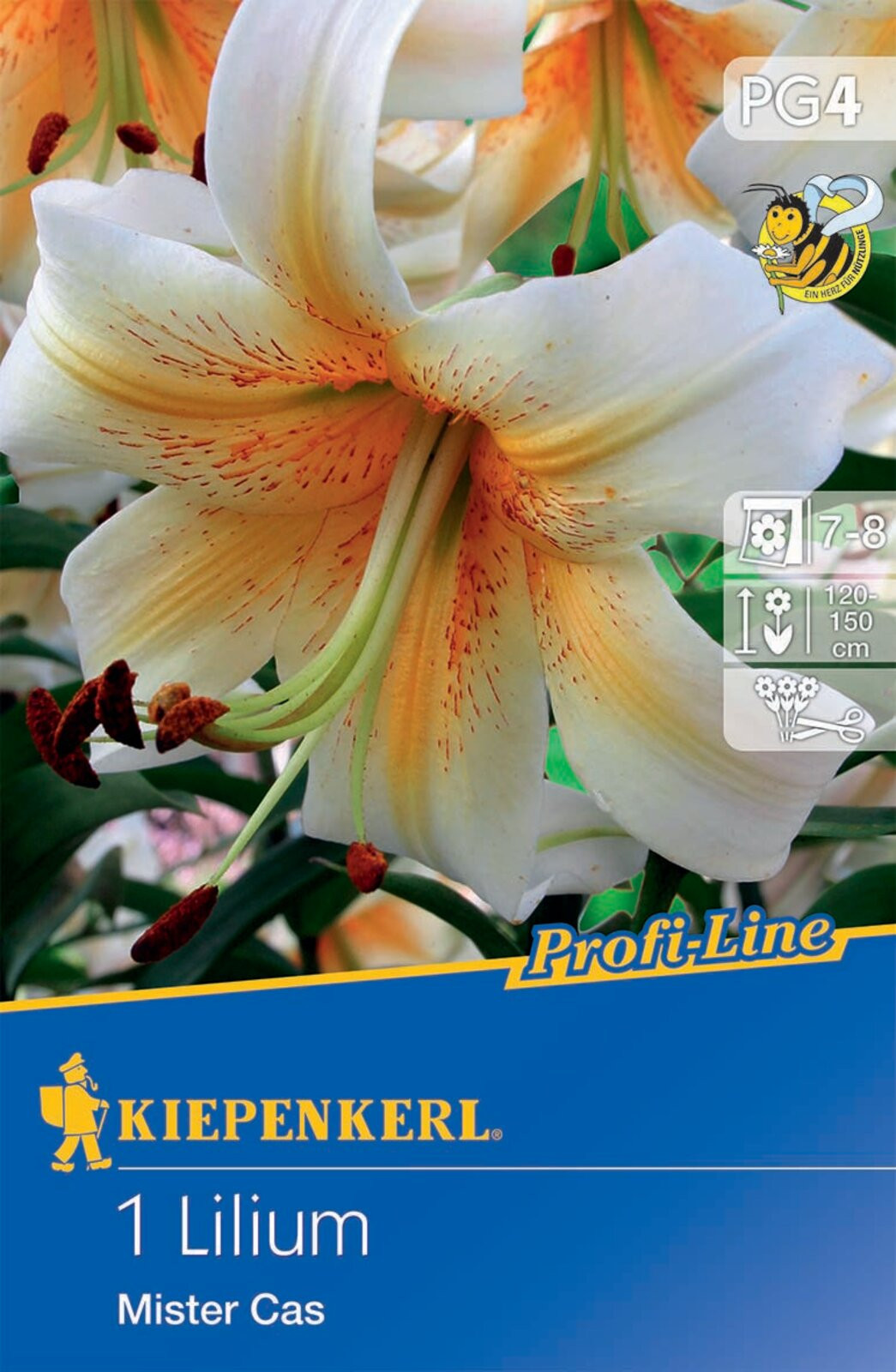 Cvetlična žarnica Lily Mister Cas Kiepenkerl 1 kos značilnosti: Velikost čebulice: okrogla: 16/18 cm Priporočeni čas sajenja: 1: Pomlad. Pomlad Pomlad. Lahko posadite tudi v balkonsko škatlo. Višina rastline: 120-150 cm Čas cvetenja: 7-8 mesecev