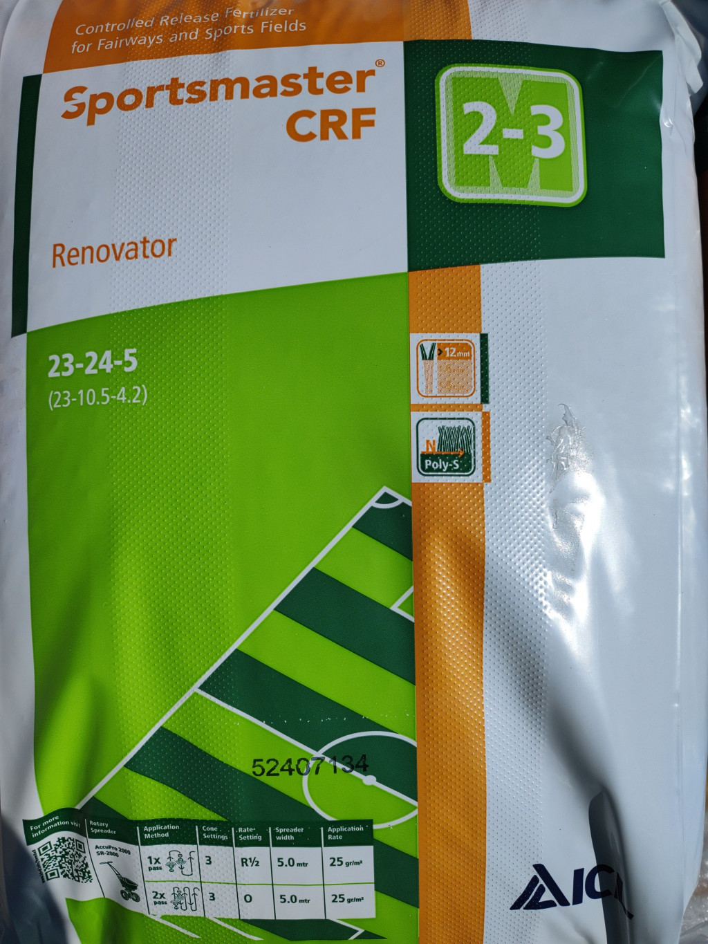 Sportsmaster 23+24+05 (Renovator) je izdelan s patentirano tehnologijo premazov Poly-S in PACE podjetja ICL. Uporablja se lahko za ponovno setev ali sajenje nove trate. Njegova hranila z nadzorovanim sproščanjem preprečujejo izgorevanje mlade trate.