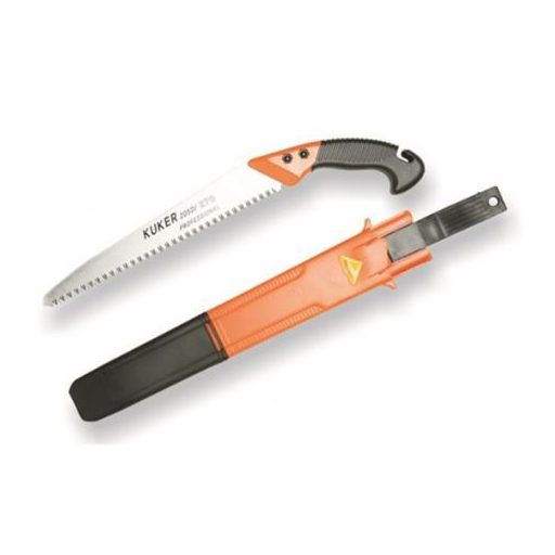 Lastnosti ročne žage s kovčkom Kuker 205D/240 24 cm: Z ravnim rezilom, aluminijastim ročajem, nedrsečimi gumijastimi ročaji in robustnim kovčkom z nastavkom za pas. Dolžina rezila: 27 cm