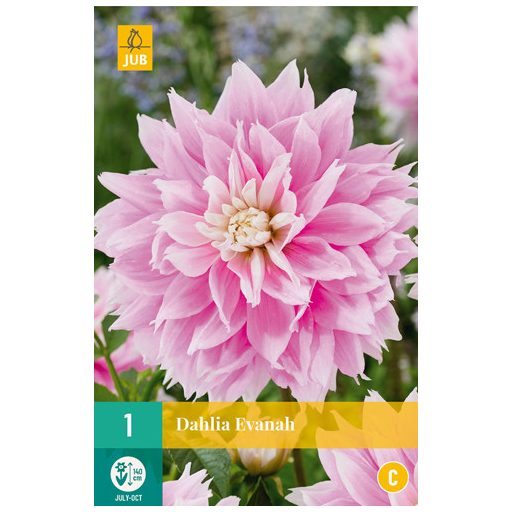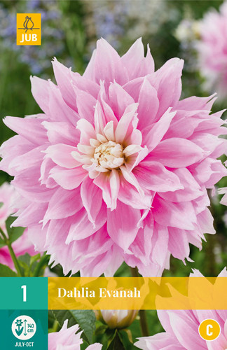 Velikocvetna, dekorativna dalija Evanah je hvaležen poletni cvet, ki razveseljuje več mesecev. Dalija Evanah cveti vse poletje od julija do prvih nočnih zmrzali. Dalija Evanah zraste približno do 80 cm. Včasih je treba opreti cvetne stebla.