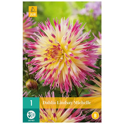Lindsay Michelle je bogato poletno cvetje, ki vam bo nudilo večmesečno zadovoljstvo. Lindsay Michelle cveti vse poletje od julija do prvih zmrzali. Lindsay Michelle zraste do približno 70 cm v višino. Zato je ta dalija idealna tudi za sajenje v lonce na terasi ali balkonu.