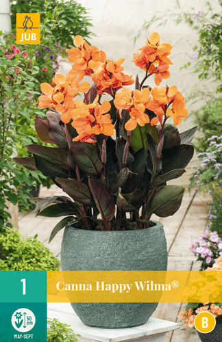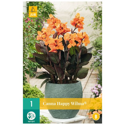 Ta mešanica cann bo vaši terasi ali balkonu dala tropski videz. Ta roža daje oranžno-rumene cvetove, ki so v čudovitem kontrastu s temnimi listi. Cannas izvira iz tropskih krajev, zato ima rada sončno mesto. Canna je dobro videti v prostornem cvetličnem loncu ali sadilniku.