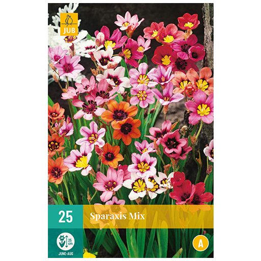 Sparaxis je mešanica živo obarvanih cvetov z rumenim srcem. Cvet je lijakaste oblike, listi pa so kopjasti. Višina 25 cm. Sparaxis je cvet z lijakasto obliko in mesnatimi listi s cvetno glavo, ki meri 25 cm. Sadimo jo lahko na robove in v lonce. Je tudi donosno rezano cvetje. Čebulice je treba pobrati iz zemlje pred prvo zmrzaljo.