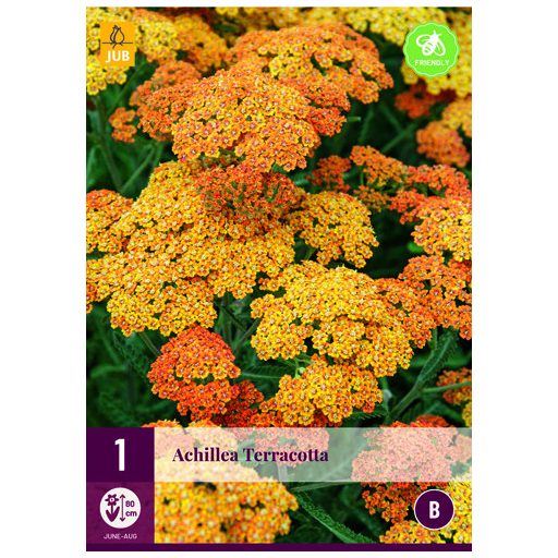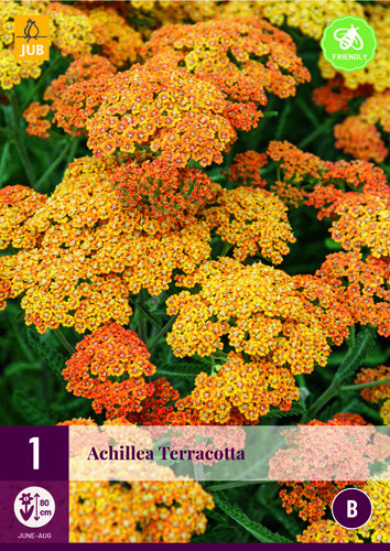 Kot pove že ime, ima Achillea millefolium Terracotta (mačji rep) terakota cvetove v obliki dežnika in cveti od junija do avgusta. Dežniki se pogosto obarvajo rumeno.