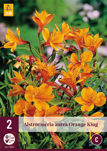 Alstroemeria Orange King je čudovita trajnica z oranžnimi cvetovi, ki je zelo primerna kot mejna rastlina. Alstroemeria se lahko uporablja tudi kot rezano cvetje. Alstroemeria je alstroemerija, ki se lahko reže kot rastlina za rezano cvetje. Dolgi trakasti listi so srednje temno zeleni. Cvetovi so rahlo podobni lilijam. Alstroemeria cveti od julija do avgusta. Alstromerija je primerna za vsako dobro odcedno vrtno zemljo. V primeru močnih pozeb v prvem letu je priporočljivo pokrivanje, nato pa so odporne. Radi imajo sončno mesto.