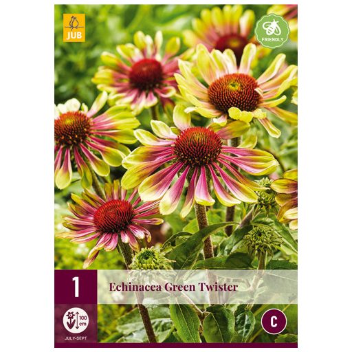 Echinacea se imenuje tudi jeglič. Echinacea Green Twister poleti cveti z bleščečimi cvetovi. Izstopajo s svojo velikostjo in barvo: rdeča kombinacija stožca je obdana s kontrastnimi zelenimi cvetnimi lističi. Ta cvet ima okrasno vrednost tudi, ko odcveti in se zeleni listi razbarvajo. Dodaten bonus je, da v času cvetenja prileti in odleti nešteto čmrljev in metuljev. Višina 70-80 cm.