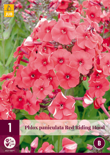 Phlox paniculata Red Riding Hood je čudovit izbor za zeleni in beli cvetlični vrt. Cvetovi so v popku zviti, razdeljeni na pet cvetnih listov in luknjico na sredini. Cvetovi oddajajo prefinjen vonj in so privlačni za metulje. Phlox paniculata Red Riding Hood je trajnica, ki najbolje raste na prostem.