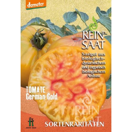 Seme paradižnika German Gold je velik, žlebast, kroglast paradižnik s tanko lupino. Plod je zelo mesnat, sočen in okusen, sok pa je zelo sladek in nežen. Barva je zlato rumena z rdečo sredino in "plamenom".
