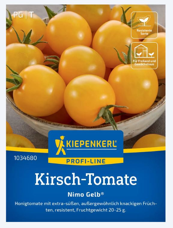 Višnjev paradižnik Nimo Gelb je sladek koktajl paradižnik rumene barve, idealen za neposredno uživanje kot delikatesa. Ti paradižniki so majhni, veliki 15-20 gramov, in za razliko od oranžne sorte "Nimo Orange" (Nimo oranžna) so rumeni.
