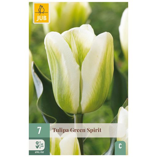 Zeleni duh, ljubljenec vrta! Bel tulipan z zelenimi črtami na zunanjih cvetnih listih in v sredini. Tulipani z močnimi stebli, ki stojijo visoko tudi v močnem vetru. Odlično se poda med trajnice in je videti dobro tudi v lončkih.
