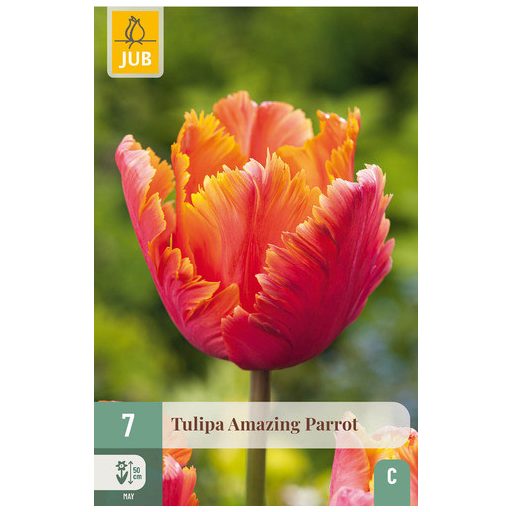 Papagajski tulipan 'Amazing Parrot' se ponaša s svetlo oranžno barvo. Za največji učinek te tulipane posadite v skupine. Odlični so tudi kot lončnice. Ta klasični papagajski tulipan, ki ga pogosto vidimo na starih slikah, je priljubljen zaradi svoje osupljive oblike in barve.